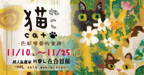 H@L擅于將年幼時期的風景融入明亮多彩的顔色,透過天馬行空的構圖,讓觀衆猶如置身歡愉童年。此次個展以熟悉的“貓”為主題,貓本身就是年少時曾陪在身邊玩耍的夥伴,加上H@L用多樣的色彩將賦予了每隻貓新的生命,讓我們又一次回到童年甜蜜記憶。然而在歡快明亮的背景下,卻又能看到作者透出些許想要回到童年的鄉愁。