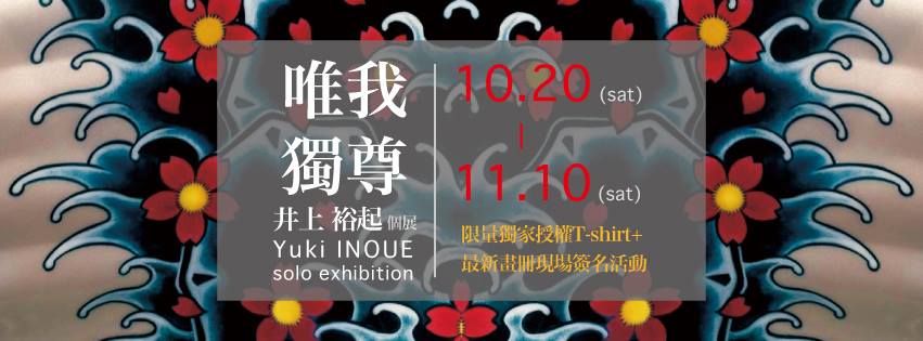 睽違2年再度在台北的個展,累積不少獲獎和參展捷報,加上不少海外藏家亦引領企盼參加個展,這次井上有備而來,將同時推出第二本作品集,並同步限量銷售以《兒雷也Jiraiya》為本和日本潮牌合作的授權T恤,